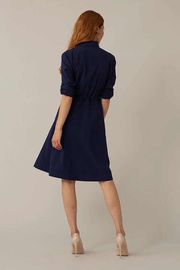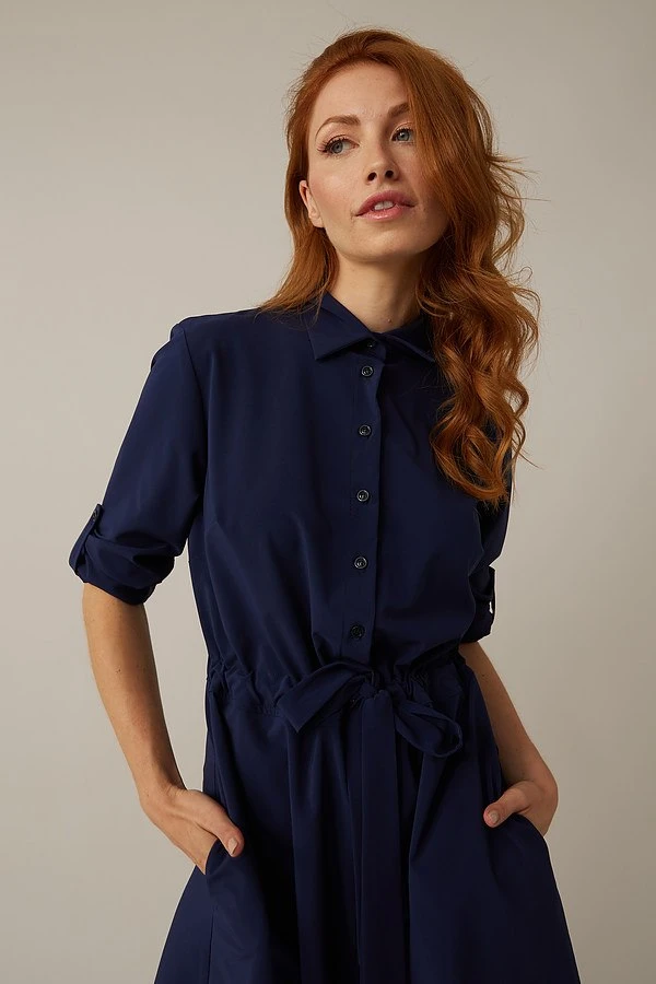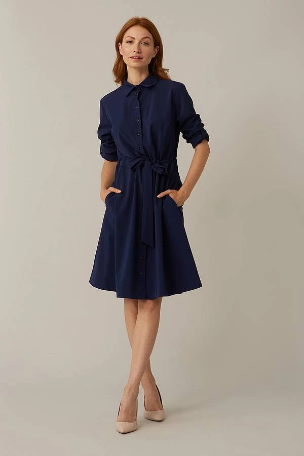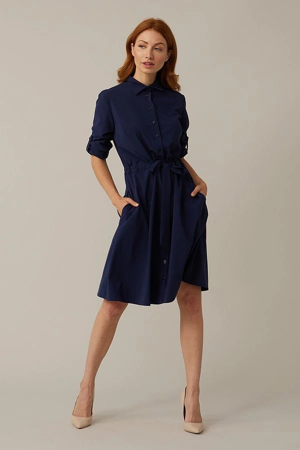 This look, an always-fabulous shirt dress designed by Joseph Ribkoff, flatters your form with its fit and flare cut, waist tie detail, and above-the-knee hem.