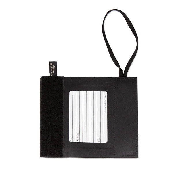 Spot your bag fast wherever you go with Bucky IdentiGrip Luggage Handle Wraps! This ingenious design includes a colorful, cushioned luggage handle with a hidden luggage tag window on the inside so your contact information or business card is easily accessible and your belongings secure. Never worry for your bag again‚heavy duty Velcro securely adheres the wrap around your bag handle, and a shock cord adds additional security.