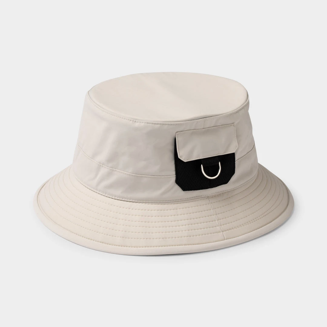 A modern bucket hat inspired by streetwear. Design details such as a mesh pocket, metal hardware and adjustable reflective wind-cord offers both function and style.
