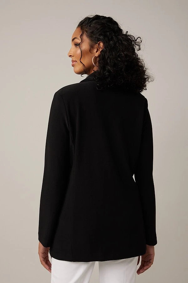 This Joseph Ribkoff blazer is all confidence and bold styling rolled into one. With wide pockets on the front and a single button closure, it’s a powerful statement blazer you’ll to bring out on day or night occasions.